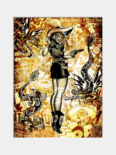 Outlaw Territory is a collection of prints created digitally from my original collage pieces — some reimagined, some brand new, all rooted in the wild world of my past collections.